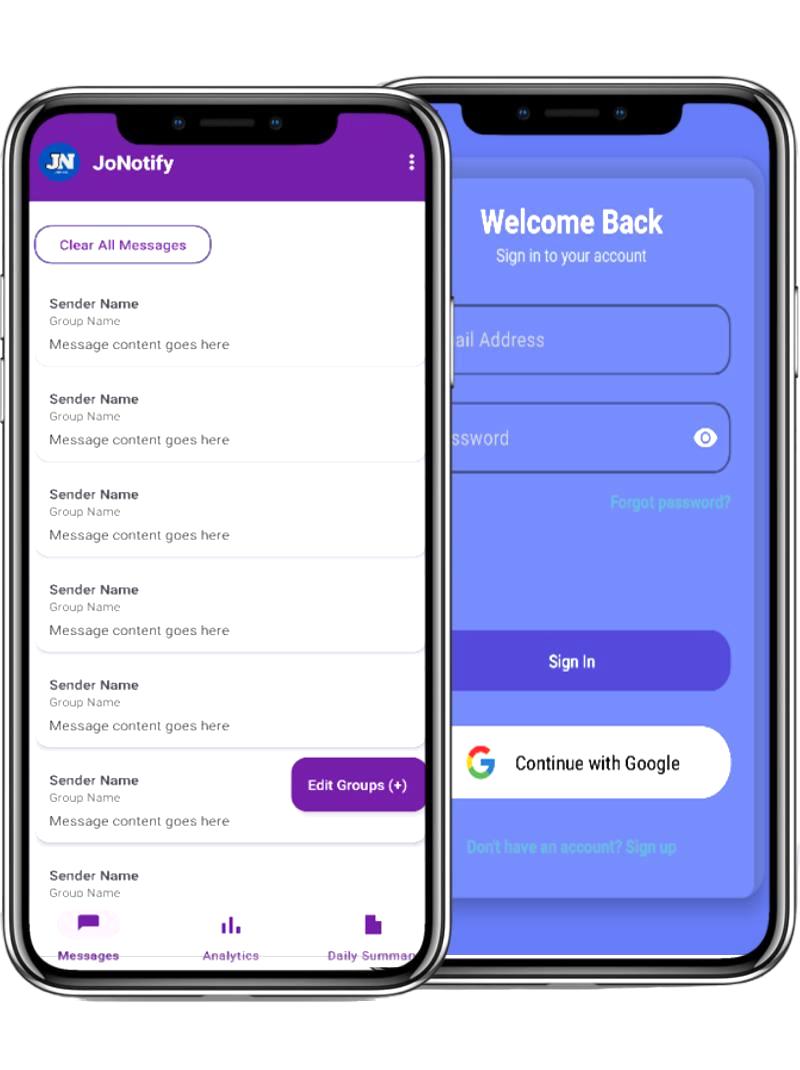 JoNotify ensures that your data and messages are kept private, the app does not share private information to any third-party service.